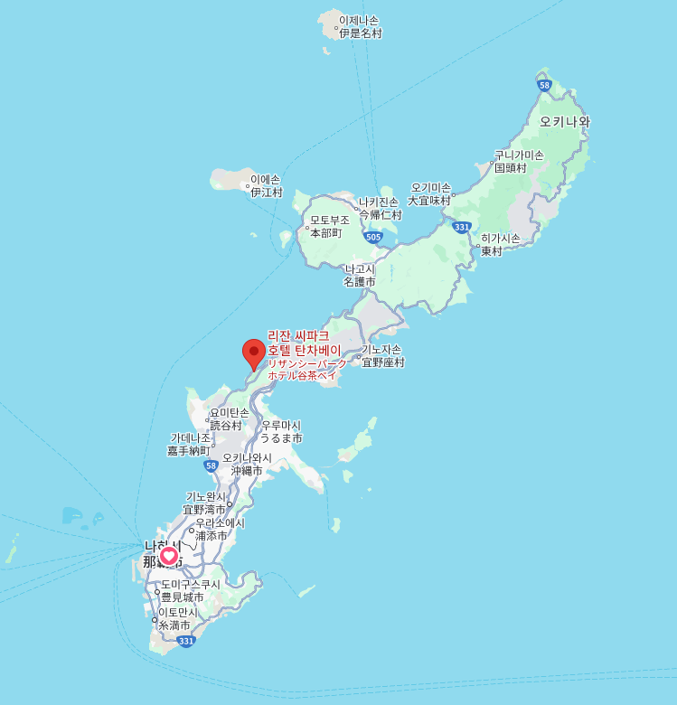 호텔은 오키나와의 중부~북쪽에 위치하고 있어요. 공항에서 차량으로 약 1시간~1시간 30분 정도 소요돼요.