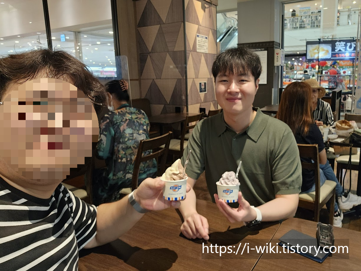 블루씰에서 자색 고구마 아이스크림을 컵으로 주문했어요. 제주도나 울릉도 특산물 아이스크림이 생각나더라고요. 고구마 아이스크림 맛이 신기했는데, 일본에서만 맛볼 수 있는 특별한 경험 같았어요. 다른 맛도 궁금해서 더 먹어보고 싶었죠.